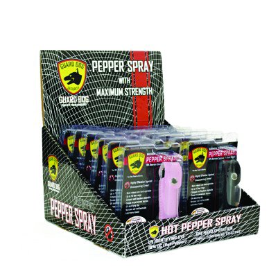 corrugated cardboard display to hold Guard Dog merchandise.