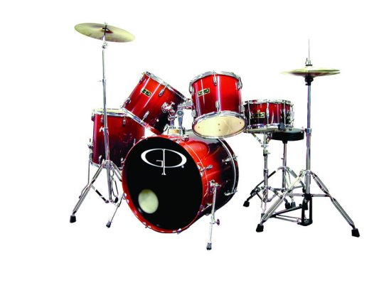 16 Lug, 16 x 16 Floor Tom 6 1/2x14 Wood Snare: 10 Lug (2.3mm) Power Hoops ingle Cam Throw off White Coated Batter Head Double Braced Hardware Snare Stand Cymbal Stand Chain Drive Hi Hat Stand Padded Drum Throne All Stands have Isolation Bushings Heavy Duty Chain Drive Bass Pedal with Multi-Purpose Beater |