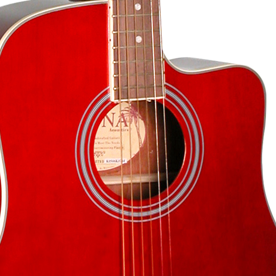 The K1E Series Transparent Red Dreadnought Cutaway Acoustic/Electric Guitar is the amp ready version of the #1 selling guitar in its class, the K1, with a few subtle upgrades added on. Simple and sturdy, this model has proven to be a work horse and a favorite amongst beginners and seasoned professional musicians alike.