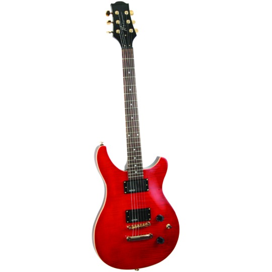 2 Humbucker Pickups, designed by EMG 1 Volume, 1 Tone, 3 Way Selector Switch Tune-o-matic bridge Transparent Red finish |