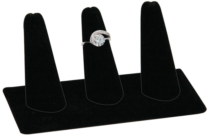 M&M 245R-3 (BK) Velvet 3-Finger Ring Stand - Black