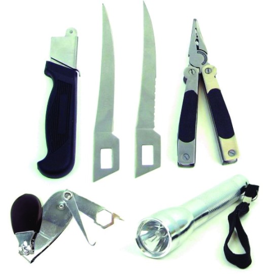 6 inch half serrated half smooth blade 6 inch knife blade Easy cut nail/line cutters | 8 in one fishermanís pliers