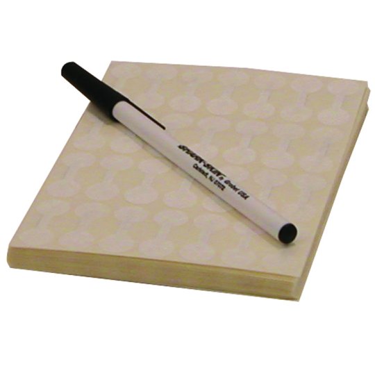 Pressure sensitive labels with center free of adhesive will not mar or soil jewelry